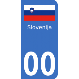 Lot de 2 autocollants avec le drapeau de Slovénie et numéro de département au choix pour plaque d'immatriculation.
